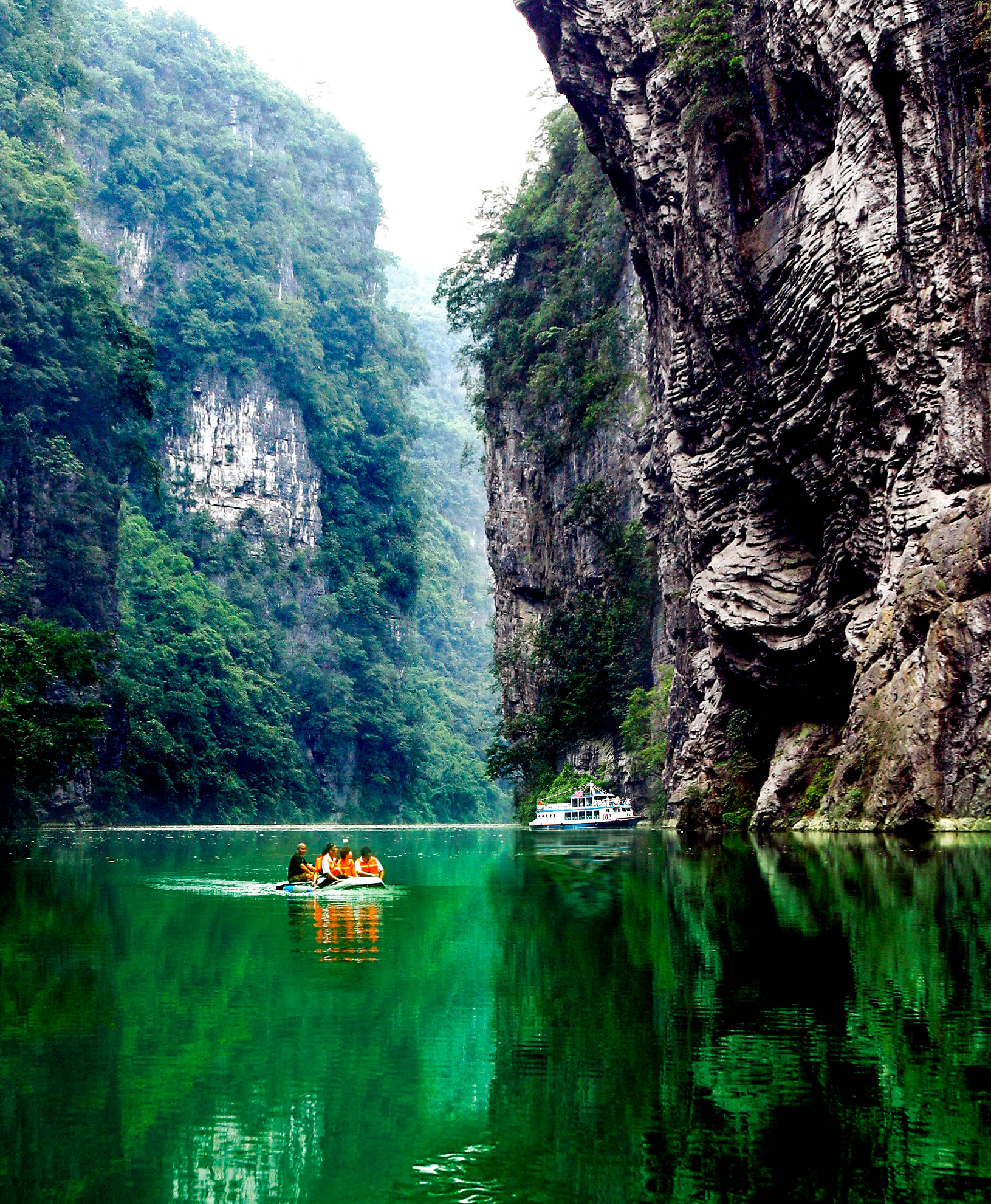 阿蓬江官渡峽位于重慶市黔江區馮家鎮,距黔江城區18公里,因古驛道從這里船渡過江而得名,峽谷全長15公里。官渡峽沿峽兩岸懸崖峭壁,江水蔚藍清澈,清幽雅致,景致迷人。