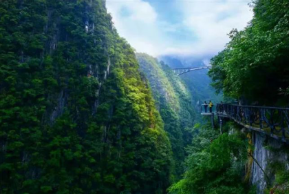 芭拉胡峽谷地質發育完整,登高遠望恰似一條地縫,谷寬 80-100 米,平均深度 200 米,最高落差 500 米;峽谷峭壁直立,崖壁大多與地平線成直角,走上808米長的空中棧道,尤其是懸掛在500米高空的100米透明玻璃棧道,大有“讓你飛”的感覺,令人心跳;兩側峰巒起伏,鬼斧神工,呈現出中國西南地區典型的喀斯特地貌,40 多個奇特的礫巖溶洞品質上乘,洞內常年恒溫18℃。黔江,其實就是一座罕見的溶洞撐起的城市。