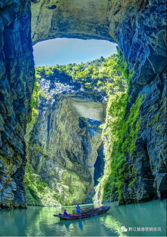 蒲花暗河景區距黔江城區28余公里,距濯水古鎮2公里,系阿蓬江的一條支流,暗河部分長約2公里。主要由天生三橋、黑龍潭、赤穴、暗河、大峽谷等組成,景觀迷人,獨具魅力,為國家4A級旅游景區。景區赤穴溶洞內氣溫全年保持恒溫22℃,有如“中央空調”。