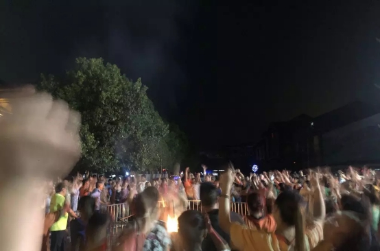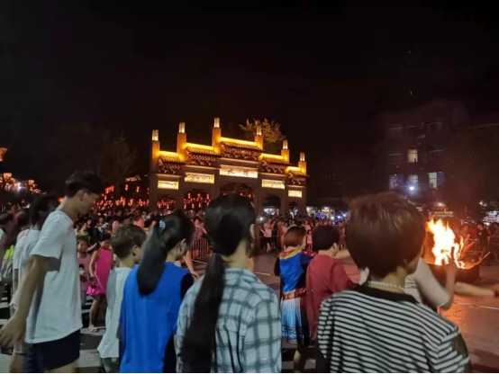 接踵而來的是濯水篝火晚會高達361°的熱情。篝火點燃后由阿哥阿妹帶領學子們一起跳擺手舞。擺手舞后,學子們跟著音樂“一起搖擺”,現場溫度持續走高。