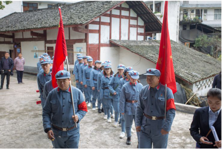 該團隊清晨出發,沿著紅軍留下的革命足跡前行,經歷了萬濤故居、紅軍博物館、紅軍樹、紅軍渡等紅色文化教學點,以弘揚歷史使命、傳承紅色基因為出發點,翻山越嶺、涉水渡江,并在水市水車坪紅色革命教學點,以徒步運動的方式,重溫紅色歷史,仔細聆聽教員深入細致的紅色黨課教育,邊行邊思邊悟,加深了解革命先烈的偉大光輝事跡,感受老一輩共產黨人為了新中國而不怕犧牲、勇于革命的不朽靈魂,收到良好效果。