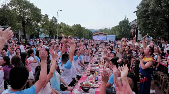 擺手歡歌呈吉瑞,長桌晚宴頌豐收。