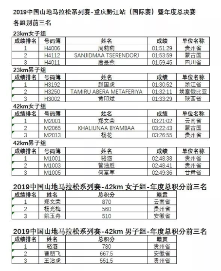 23公里男子第一名