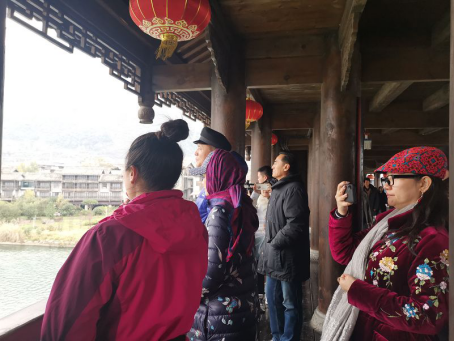 展映的同時嘉賓們到了濯水景區步行了世界第一風雨廊橋。近距離欣賞土家文化瑰寶。