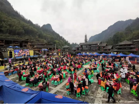 2000余名跑客在黔江小南海-土家十三寨“過節”,跑原汁原味的土家十三寨,體驗土家民俗運動會和非遺文化,吃冬至日千人壩壩宴……