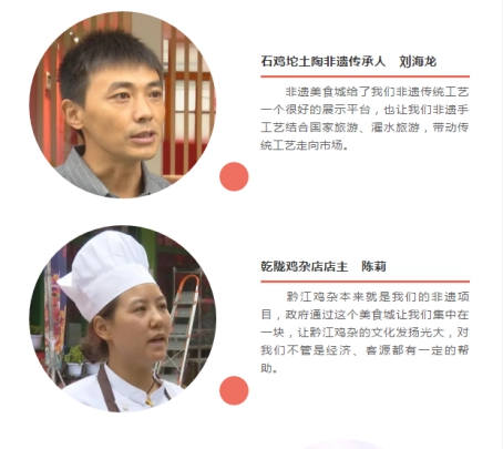 非遺美食城立足黔江,面向武陵山區(qū),搜集、挖掘、開發(fā)特色美食、民族工藝、非遺醫(yī)養(yǎng)、紅色文化等非遺資源,把黔江雞雜、渣海椒、土陶、根雕等非遺特色文化多維度融入到旅游中。在這里,游客不僅可以品味到不同風格的美食,還能感受到傳統(tǒng)手工藝的獨特魅力。