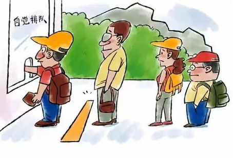 在景點(diǎn)游玩時(shí)應(yīng)遵守公共秩序,不并行擋道,不亂插隊(duì)。推己及人,方便大家。在游客較為擁擠時(shí),更要謙讓回避,保證安全。