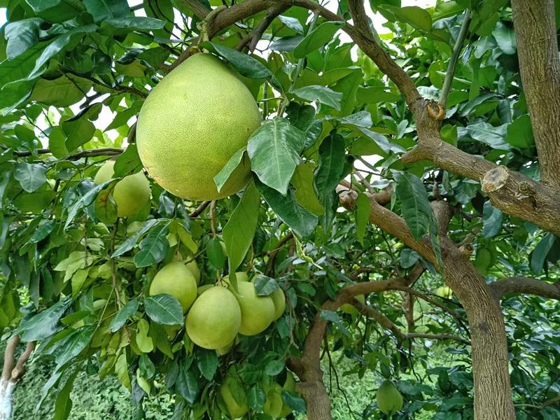 金黃的柚果掛滿枝頭若星辰般點綴在柚園的翠綠之中