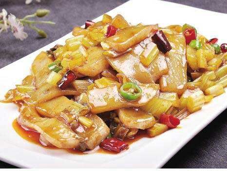 舊時(shí),農(nóng)家多用土法加工魔芋。將鮮魔芋洗凈,放在粗糙的石板上用力摩擦,磨成漿糊狀;加上石灰水,讓其適當(dāng)凝結(jié)成形;再用石灰水煮熟,最后用清水浸泡,即可切成細(xì)條,炒成菜肴。