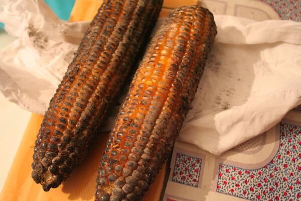嫩苞谷用木炭火燒熟,香甜可口,外脆內(nèi)軟。往時(shí),因怕影響糧食產(chǎn)量,多限于兒童食用;現(xiàn)今,小鎮(zhèn)街頭比比皆是,現(xiàn)燒現(xiàn)賣,一元一個(gè)。